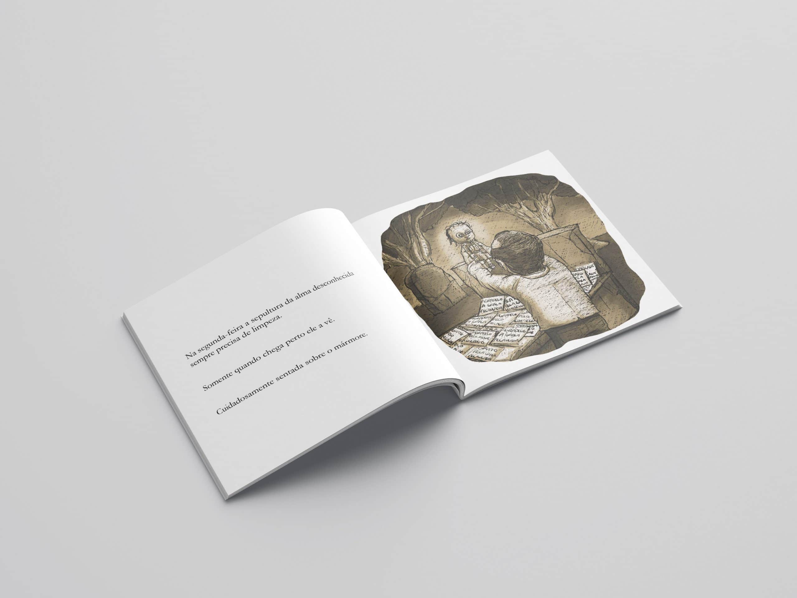 Voltado para o público adulto, é o meu livro amaldiçoado. Escrito antes dos infantojuvenis “As cores do esquisito” e “Festa no salão”, quis o destino que “As 3 mortes de Euzébio” fosse o meu terceiro livro a ser publicado. Passou pelas mãos de outros cinco ilustradores que abandonaram o projeto sem maiores explicações, até que Daniel Leal o concluiu. São três capítulos que podem ser lidos em qualquer sequência para descobrir o mistério que ronda o velho Euzébio e a alma desconhecida.